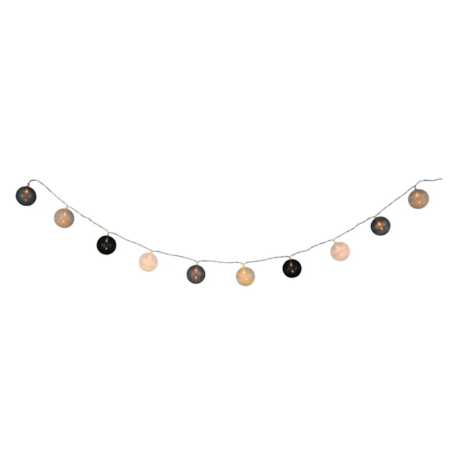 10er LED-Kugellichterkette – Ø = ca. 4 cm – schwarz/weiß/grau