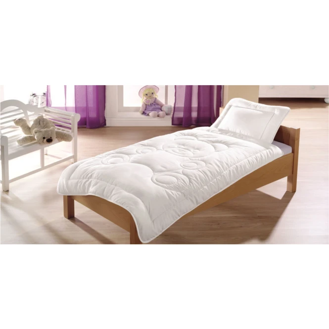 Mit dem kuscheliges Kindersteppbett schlafen die Kleinen wie von selbst ein. Dazu gibt es noch ein gemütliches Kopfkissen in den Maßen 60x40cm. Durch das feine Microfaser Gewebe wirkt das Kinderbettenset sehr anschmiegsam, sowie temperatur- und feuchtigkeitsausgleichend. Die Decke eignet sich damit ideal als Frühlings- oder Sommerdecke, sowie als Zweittdecke für die kalte Jahreszeit.