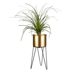 Pflanztopf Mit Ständer – Schwarz/gold – Aus Metall – Ca. 13 X 33 Cm