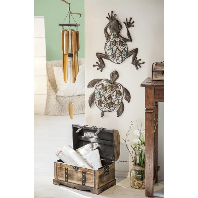 Trendsetter, aufgepasst! Wenn ihr es mögt, eure vier Wänden im Frühjahr in ein behagliches Ambiente zu tauchen und daher auf der Suche nach geschmackvoller Dekoration seid, werdet ihr dieses Schmuckstück lieben! Die niedliche Wanddeko eignet sich hervorragend, um der Fantasie beim Schmücken freien Lauf zu lassen und dem Zuhause eine persönliche Note zu verleihen. Sie kommt in Form einer liebevoll gestalteten Schildkröte daher, welche aus Metall besteht, 34 x 6 x 38 cm groß und vor allem dank den farbenfrohen Steinen ein echter Blickfang ist. Ganz gleich, ob Sie sie in den Hauseingang hängen, an der Garage oder Hauswand anbringen oder als Gartendeko nutzen – mit diesem tollen Stück sind eurer Fantasie beim Herrichten von Haus und Hof fortan wirlich keine Grenzen mehr gesetzt. Also lasst eurer Kreativität freien Lauf und tobt euch beim Dekorieren munter aus.