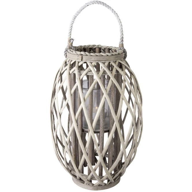 All diejenigen Trendsetter, die nicht genug von außergewöhnlicher Dekoration bekommen, werden das stilvolle Windlicht lieben! Dieses ist kunstvoll mit grauer Spaltweide ummantelt und vor allem dank dem extravaganten Design sowie dem aus Kordel bestehenden Henkel der absolute Hingucker, der ganz sicher nicht nur große Dekofans verzaubert. Durch das perfekte Zusammenspiel aus unterschiedlichen natürlichen Materialien sowie einer Größe von 17 x 41 cm integriert sich die Laterne nahtlos in jeden Raum ein und taucht ihn in Verbindung mit einem wohlig flackernden Teelicht (nicht im Lieferumfang enthalten) in eine paradiesische Wohlfühloase, die zum Entspannen und Träumen einlädt. Darüber hinaus ist sie auch ein wunderbares Stück für all diejenigen, die eine dezentere Dekoration bevorzugen, die Modernität jedoch nicht außer Acht lassen möchten.
